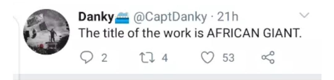 The portrait was done by young artist, Nike Artistry. He tagged the portrait “African giant”.
