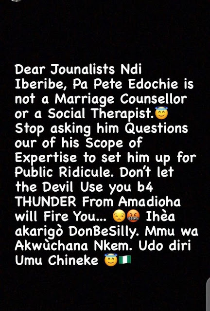 Unlike OAP N6, he has taken to his Instagram to call out the group of journalists constantly interviewing Pa Pete Edochie who’s a grandfather.