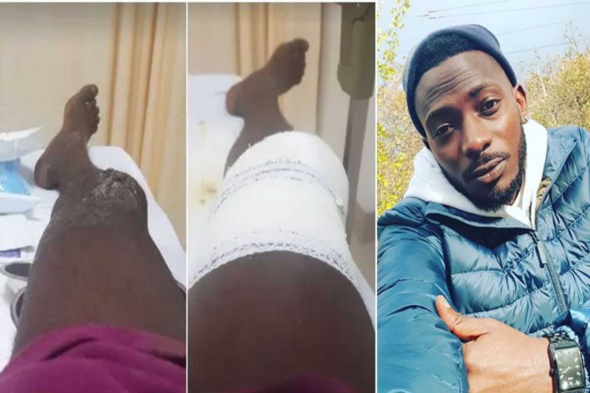 According to the singer, there was a fire outbreak in his house, and his leg was burnt.