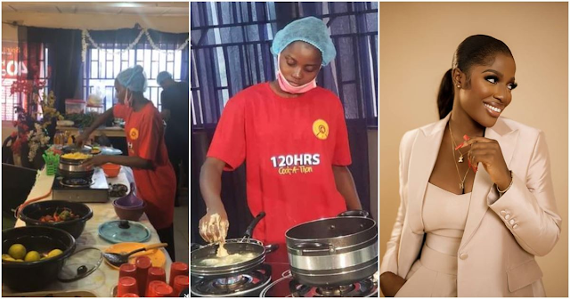 Now just like the Liberian, a lady is reported to be currently on track to surpass the record set by Hilda Baci as she embarks on a cooking marathon scheduled to last for 120 hours, with more than 12 hours already completed.